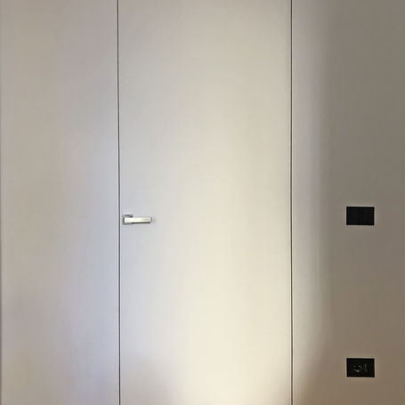Bilocale sito nel centro di Roma: caratterizzato da un volume polifunzionale posto al centro di un open space che divide la zona della cucina dal soggiorno. Questo stesso volume da un lato nasconde il frigorifero e parte della cucina, dall’altro, entrando nell’abitazione, diventa una quinta per un opera d’arte concentrando il focus su di sé.